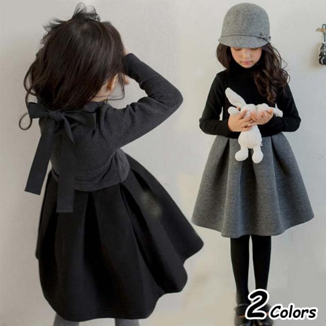 [10%クーポンあり]入学式 入園式 卒業式 卒園式 女の子 ワンピース フォーマル ワンピース キッズ 長袖 フォーマル 子供服 ワンピース 黒 グレー 女の子 七五三 結婚式 子供 ドレス 長袖 長袖ワンピース フォーマルワンピース セレモニー 黒 グレー リボン