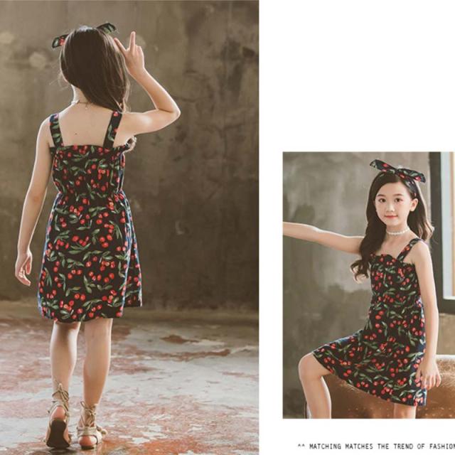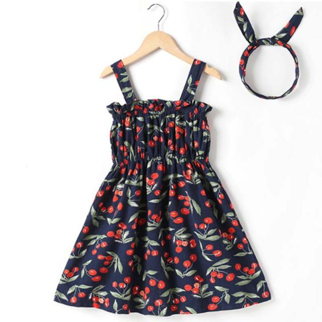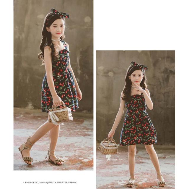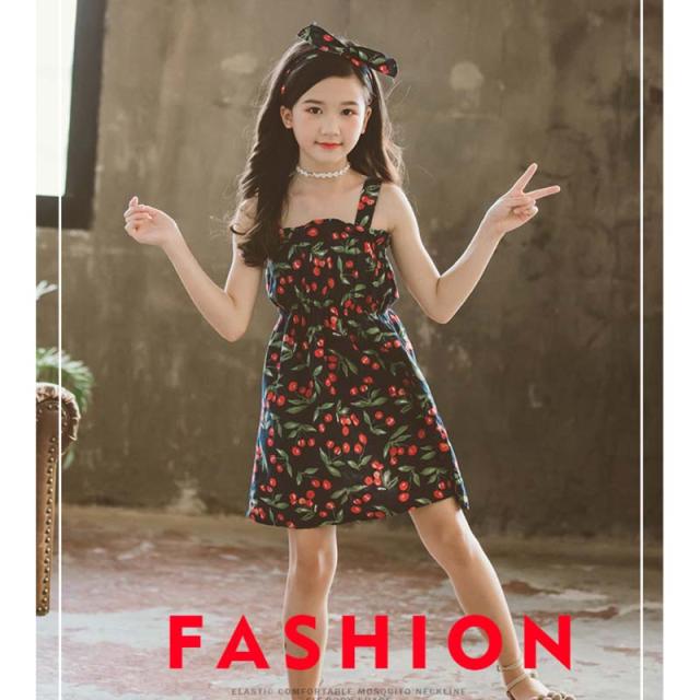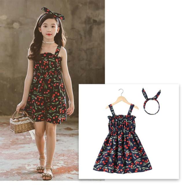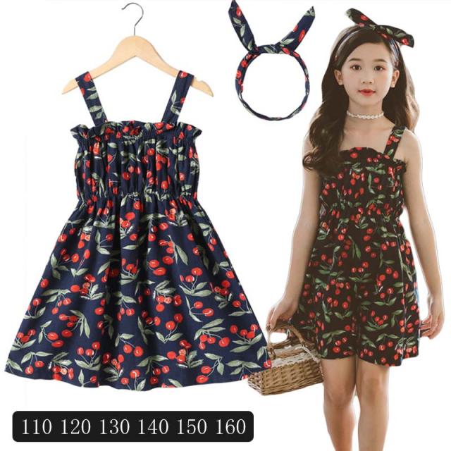 送料無料 女の子 夏服 夏 子供服 韓国子供服 さくらんぼ風 サクランボ風 ノースリーブ オフショルダー ドレス 子供服 100cm-160cm ベージック ネイビー色 ワンピース 韓国子供服 韓国服 子供服 キッズ ジュニア 女の子 カチューシャ付き
