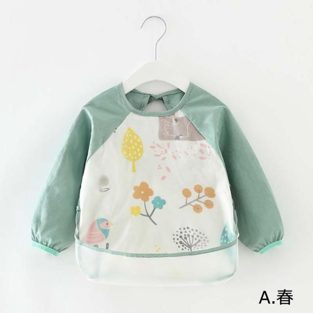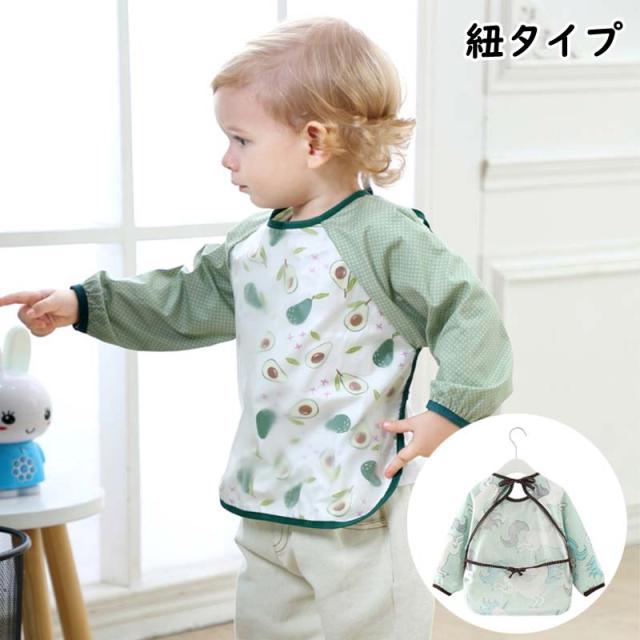 【送料無料】お食事エプロン 長袖 長袖エプロン 紐タイプ 前面防水加工 長袖 スタイ 離乳食 よだれかけ 洗濯可 よだれかけ 赤ちゃん 食べこぼし防止 ベビー用 ベビー用品 ベビーエプロン