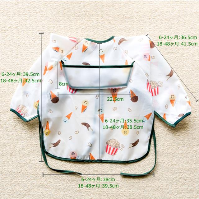 【送料無料】 ベビー用エプロン ポケット付き 長袖 離乳食 入園準備 お食事用エプロン 防水 スタイ 袖あり かわいい おしゃれ ベビー 赤ちゃん ベビー スタイ お食事エプロン 長袖