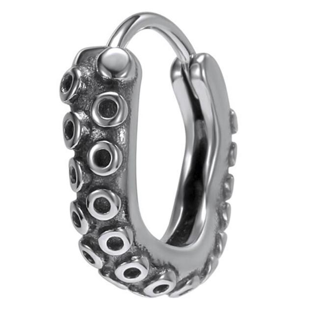 海賊のコスプレにオススメのタコやイカの足、クラーケンをデザインしたおしゃれでかっこいいステンレス素材のフープピアスです。