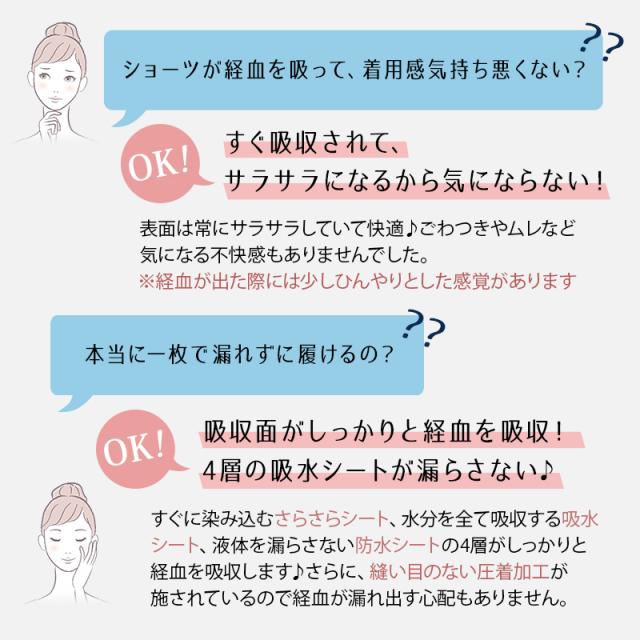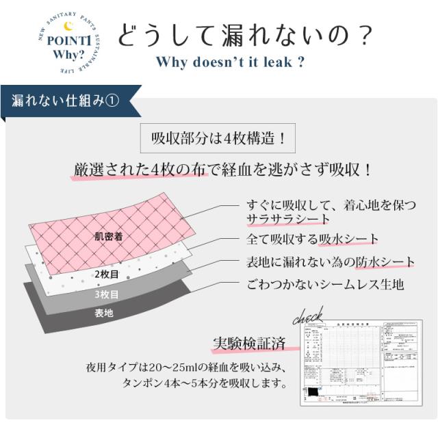 4層シートが経血をしっかりと吸収し、漏れる心配もありません♪