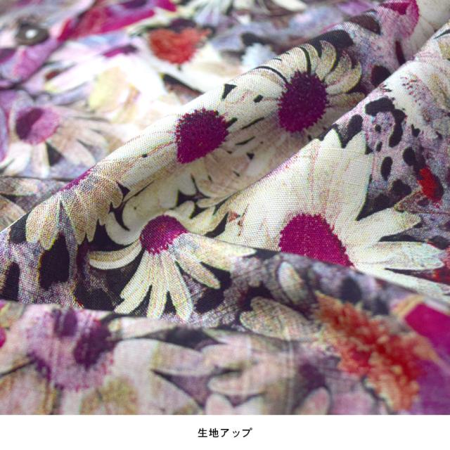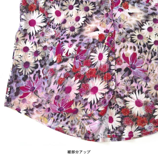 シャツ ブラウス ロング丈 花柄 総柄 七分袖 五分袖 レディース トップス プリント バンドカラー スタンドカラー チュニック スリット フラワー リーフ 小花 リゾート ハワイアン アロハシャツ ブロック 派手 送料無料 fk25 (bdg411)