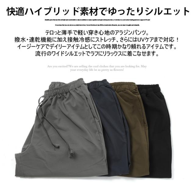 ワイドパンツ メンズ サルエルパンツ アラジンパンツ 夏新作 吸水速乾 ドライ 接触冷感 イージーパンツ ストレッチ 撥水 UVケア きれいめ ドライストレッチ バルーンパンツ 日焼け防止 紫外線対策 ひんやり 冷感