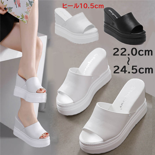 サンダル レディース スリッパ ウェッジヒール 10.5cm 黒 白 ミュール 結婚式 サンダル オープントゥ サボサンダル サンダル プラットフォーム ストーム 通勤 カジュアル