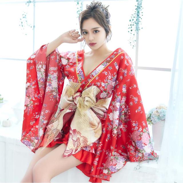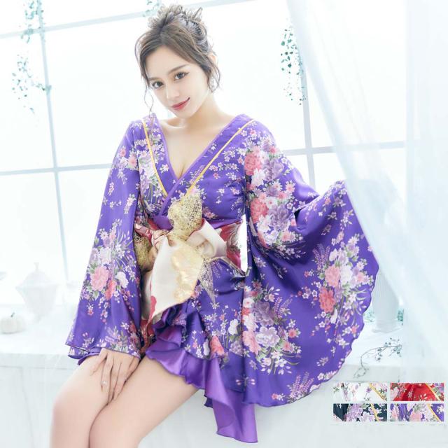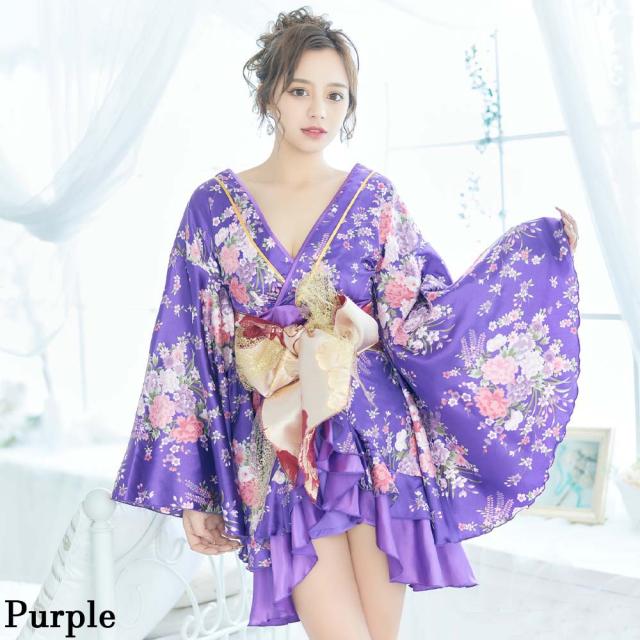 花魁 コスプレ 仮装 コスプレ 和服 着物 花魁 ドレス よさこい 衣装 着物 コスプレ セクシー 巫女 コスプレ 送料無料 前開きフリル花魁セクシー着物ミニドレス