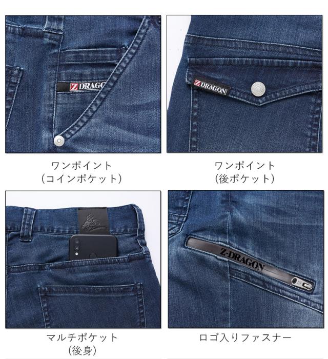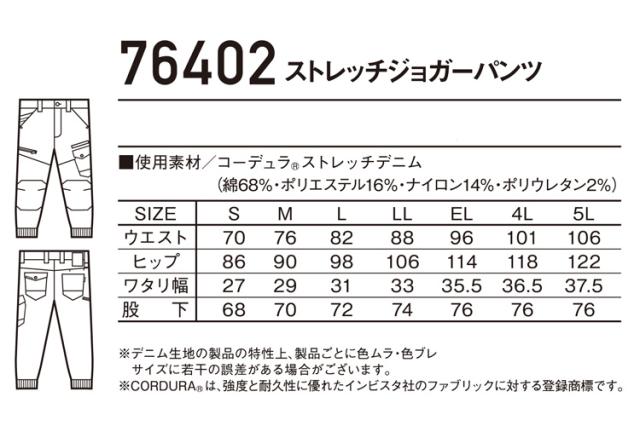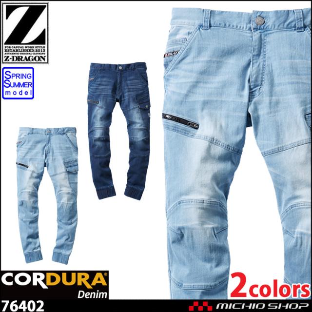 ジードラゴン Z-DRAGON コーデュラ デニム ストレッチジョガーパンツ 76402 接触冷感 春夏 作業服 自重堂