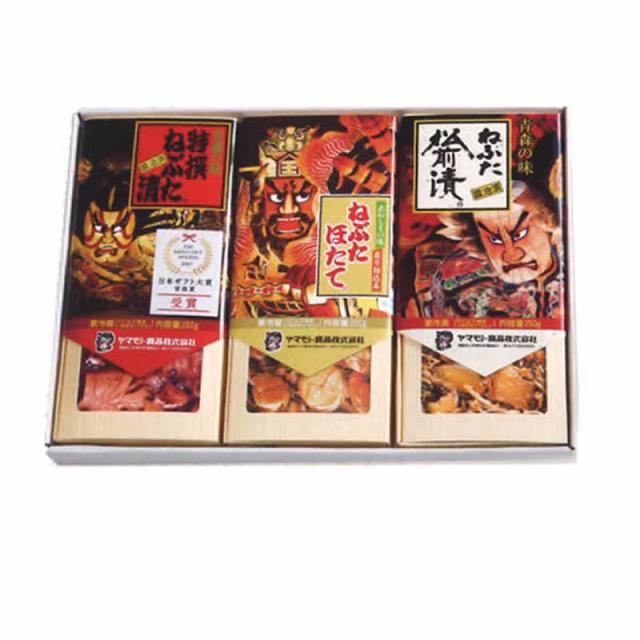 ギフトタイプの中からオススメの3種類(特撰ねぶた漬・ねぶたほたて・ねぶた松前漬)を詰め合わせ致しました。