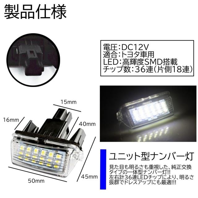トヨタ汎用 LED ナンバー灯 36連 ライセンス トヨタ ヴィッツ エスクァイア ノア ヴォクシー ラクティス カローラフィールダー 2個