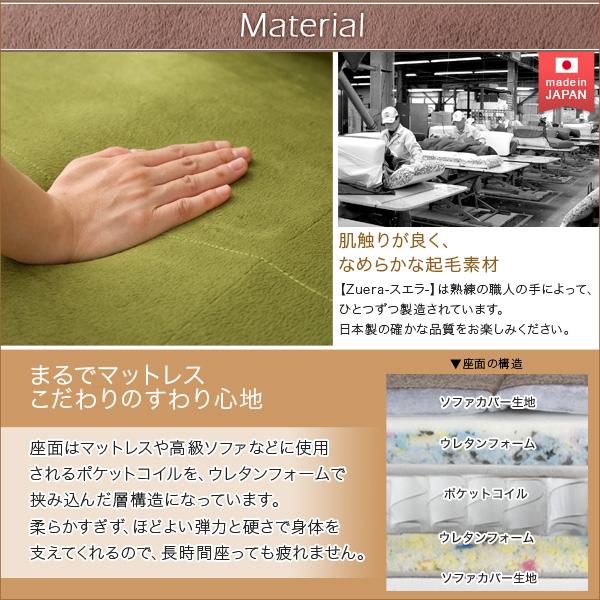 Zuera スエラ コンパクトカウチソファ (カウチソファ コンパクト ポケットコイル リクライニング 起毛タイプ 日本製 国産 ワンルーム 2人掛け ロースタイル おしゃれ おすすめ)