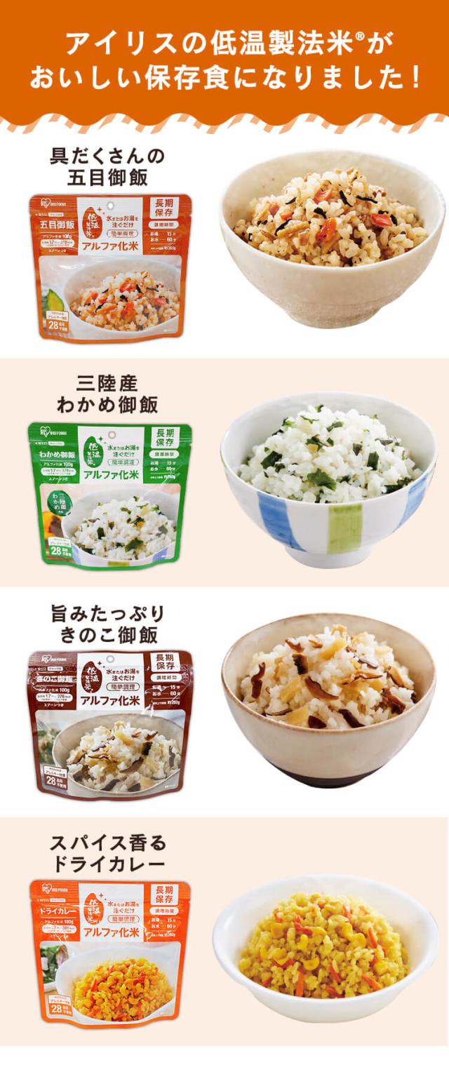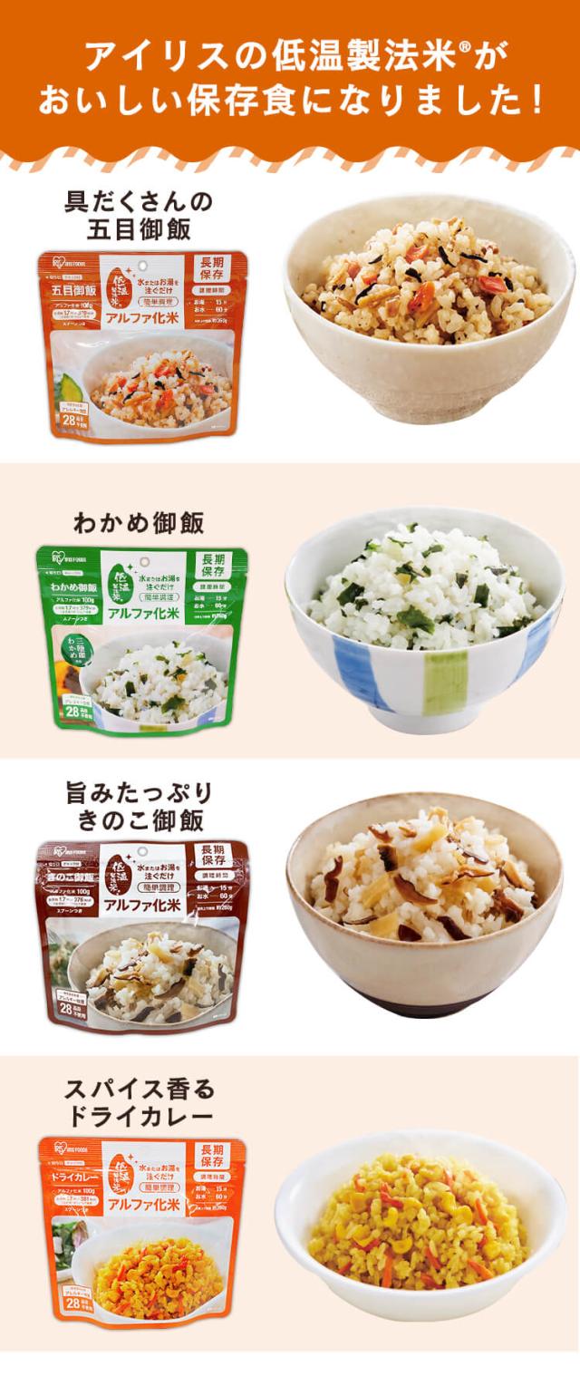 非常食 非常食セット アルファ米 保存食 アルファ化米 五目御飯 きのこご飯 わかめご飯 ドライカレー 100g 防災グッズ 防災用品 災害 防災食 災害用品 備蓄 非常 非常用 地震 アルファ米 保存食 五目ご飯 ごはん お米 非常食 長期保存 防災 防災食 災害食 アイリスフーズ