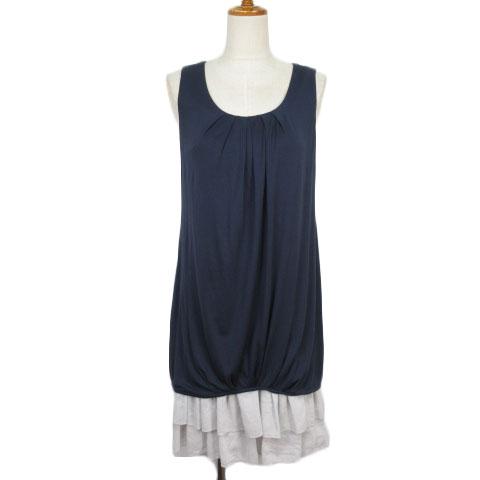 【中古】アンタイトル UNTITLED ワンピース ドッキング フリル ティアード シフォン ノースリーブ 2 紺 ネイビー グレー レディース