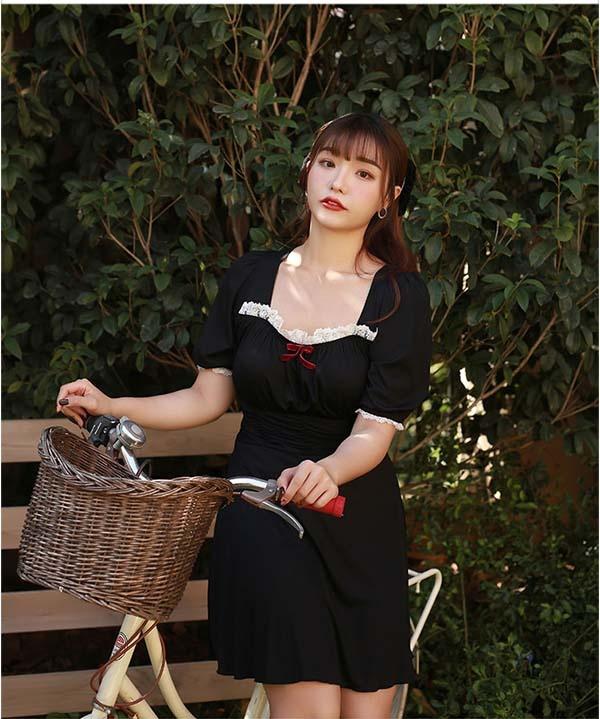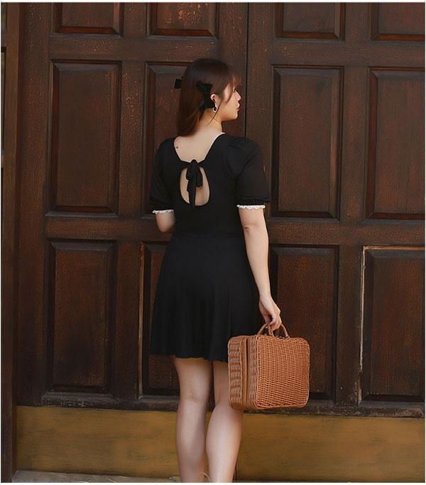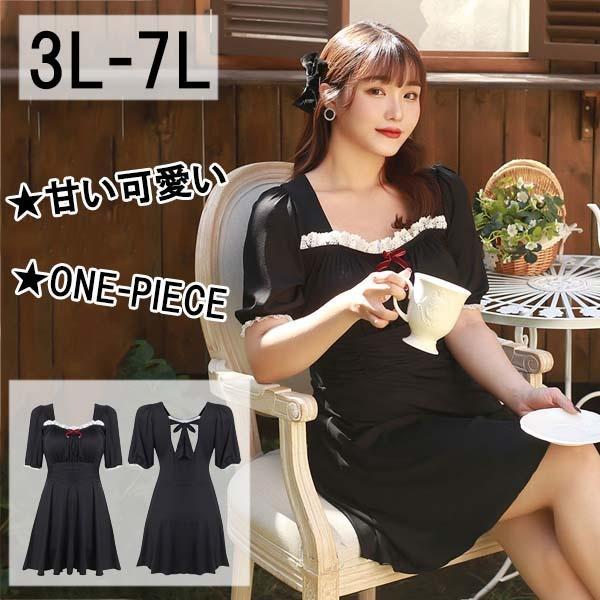 オールインワン ワンピース水着 ぽっちゃり水着 レディース 水着 体型カバー 大きいサイズ ぽっちゃり レース 海 沖縄 温泉 大人 可愛い 韓国風 着痩せ 女性用 水着新作 3L 4L 5L 6L 7L ブラック dm087t2t2s3