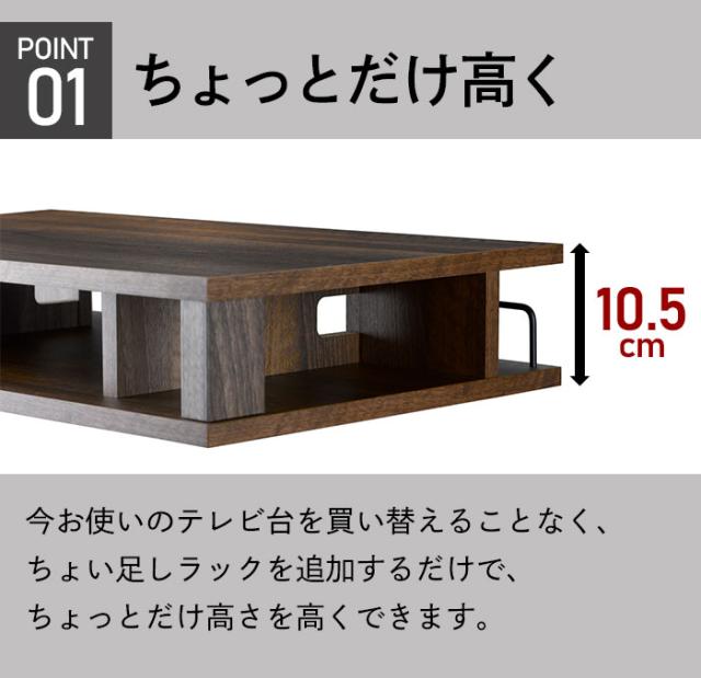 テレビ、パソコンの高さを少し上げたい、買い足したAV機器等をスッキリ収納したい方におすすめの「ちょい足しラック」。