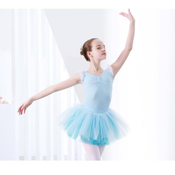 バレエレオタード キッズ スカート バレエ 可愛い レオタード バレエダンス バレエ レオタード 子供ダンス衣装 女の子 子供 キッズ ジュニア 練習着 ダンス 新体操 イベント 発表会 レッスン ちょこっと袖 レース フリル パープル ブルー ピンク イエロー dm002g5g5s3