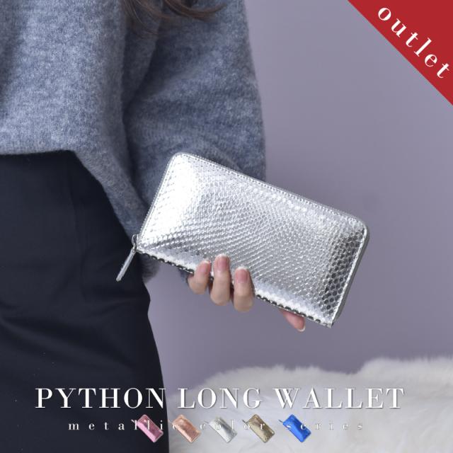 アウトレット パイソン 本革 長財布 ラウンドファスナー メタリック レディース メンズ 訳あり 財布 シルバー 蛇革 レザー 大容量 牛革 軽量 カード収納 おしゃれ かわいい 軽い ヘビ革 キラキラ 開運 一粒万倍日 金運 風水 縁起 大人 女子 女性 ギフト 送料無料