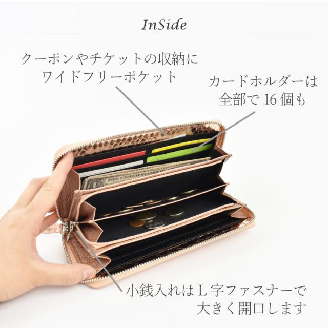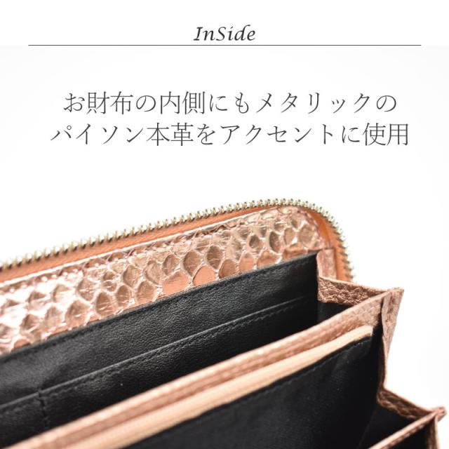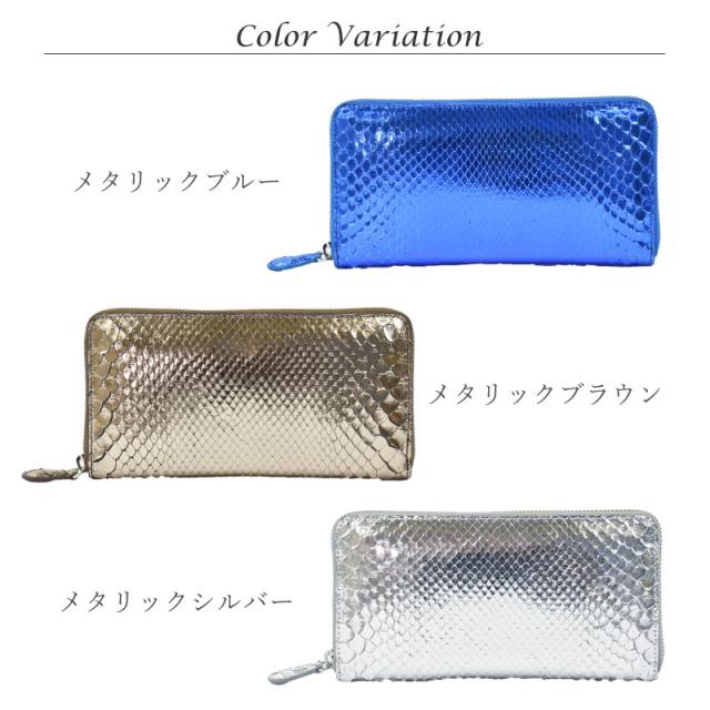 | 品名 | メタリック パイソン 本革 ラウンド 長財布 |