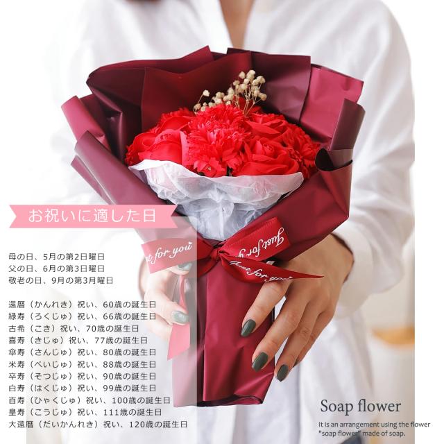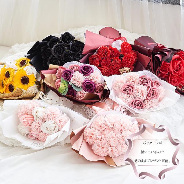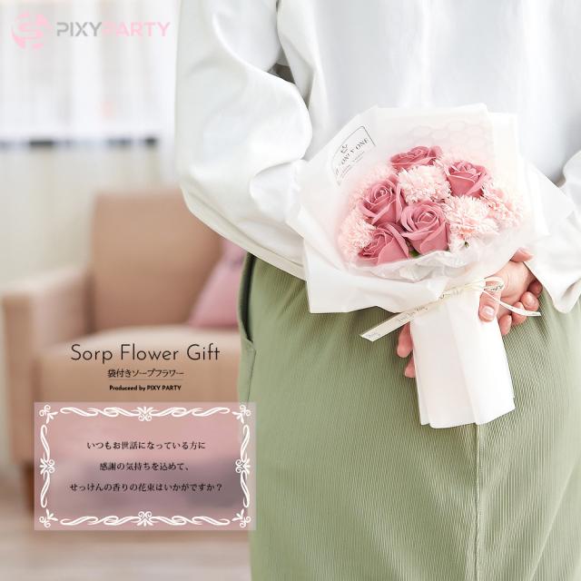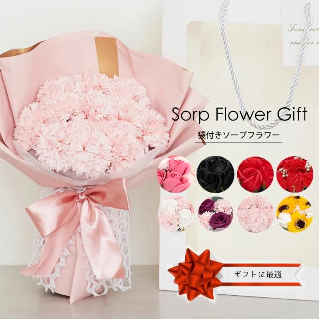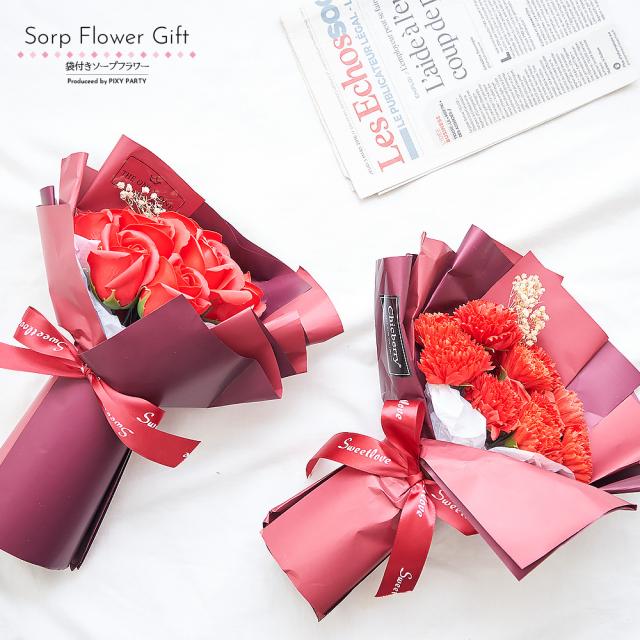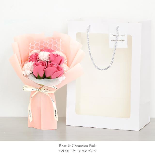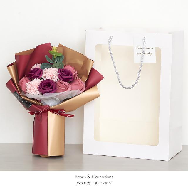 ソープフラワー ギフト メッセージカード無料 花束 袋付き (rs-gift-001) 【沖縄県除き送料無料】 母の日 ソープ フラワー ブーケ プレゼント 石鹸 花 カーネーション バラ 枯れない 贈り物 敬老の日 誕生日 結婚 退職 造花 卒業 入学 記念日 agesugi_sfp