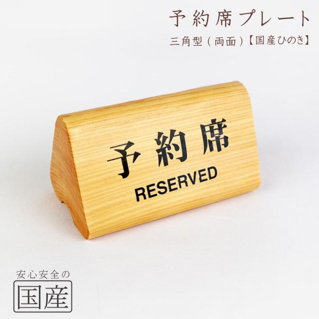 【国産ひのき】【国産品】予約席プレート三角型(両面) RESERVED 予約席サイン リザーブド 卓上サイン サインプレート 卓上サイン ご予約席札 木製 日本製 案内板 木 テーブル サイン 桧 ヒノキ 檜