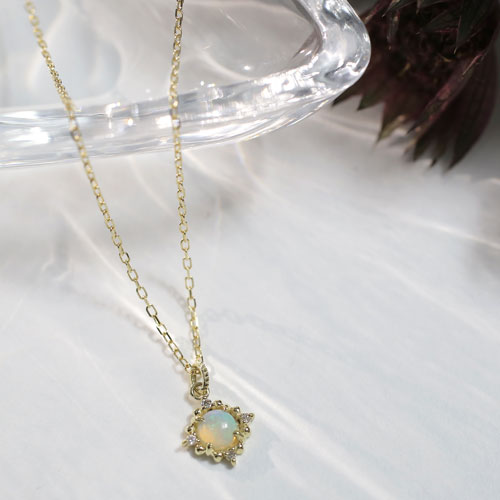 上品なオパールにきらきら輝くダイヤモンドが大人っぽいペンダントはプレゼントにも大変おススメのジュエリーです。