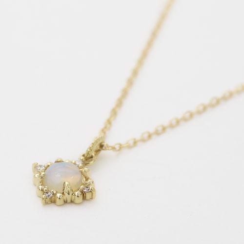 18金 K18 イエローゴールド ダイヤモンド 0.02 ネックレス アズキチェーン ペンダント オパール レディース 小さめ