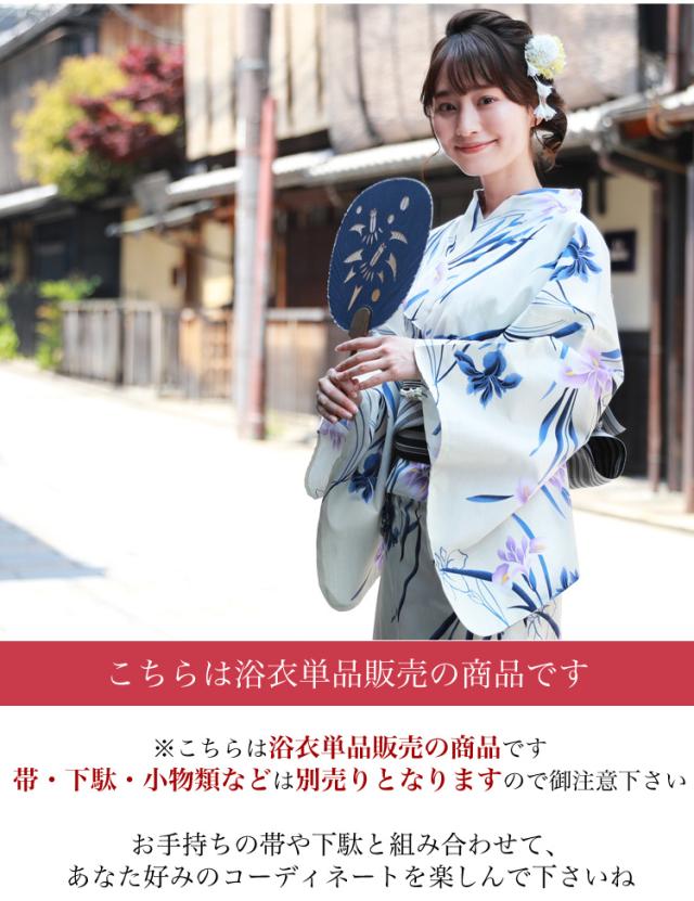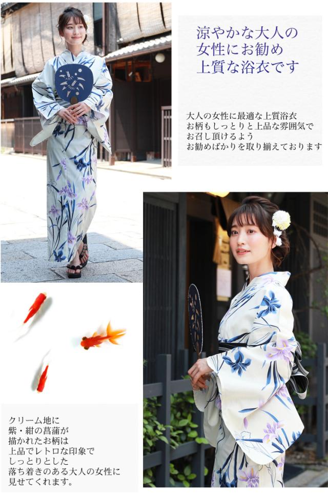 浴衣 単品 レトロ 高級変わり織り綿浴衣単品「クリーム地に紫の菖蒲」浴衣 菖蒲 レディース 古典柄 大人 モダン しっとり 2021