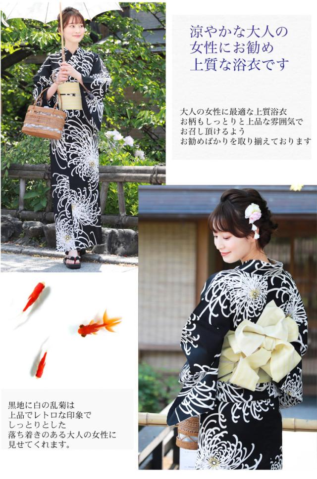 浴衣 単品 レトロ 高級変わり織り綿浴衣単品「黒地に白の乱菊」浴衣 黒 乱菊 レディース 古典柄 大人 モダン しっとり 2021
