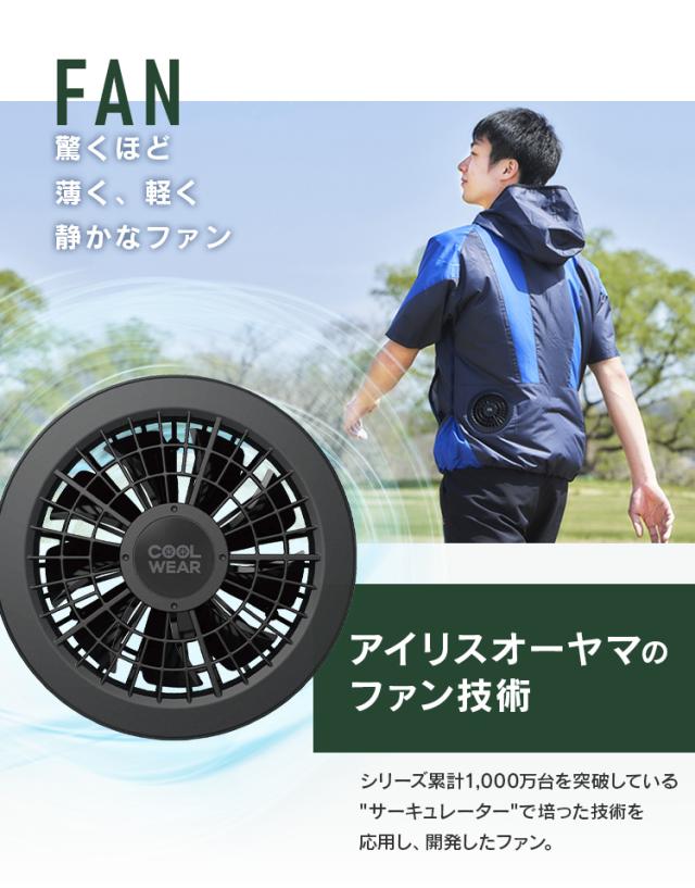 クールウェア 空調ウェア 半袖 バッテリー ファン付き 扇風機付き 夏 フード付き ファン付きウェア 涼しい 風量3段階 メンズ レディース 現場 アウトドア スポーツ キャンプ 屋外 釣り 冷却ウェア 暑さ対策 作業服 フルセット アイリスオーヤマ COHS *