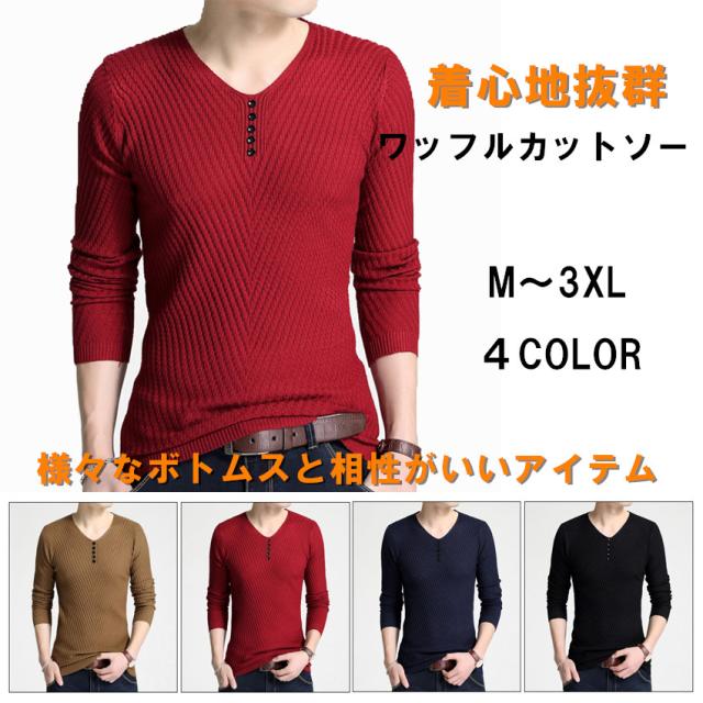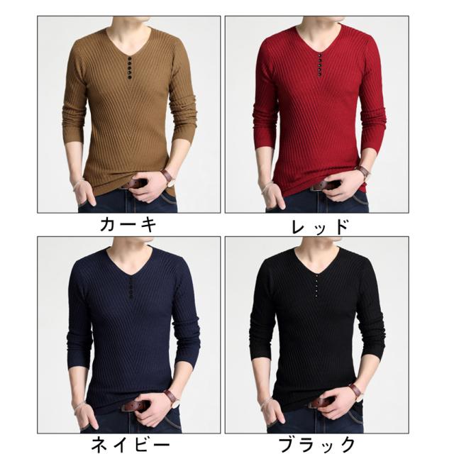 (メール便)送料無料トップス ニットセーターカットソー メンズ tシャツ 長袖 Vネック インナー Vネック長袖ジャガードデザインカットソー
