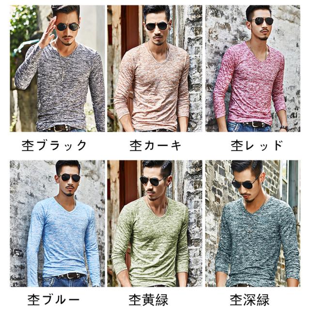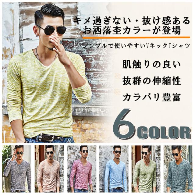 (メール便)メンズTシャツ トップス長袖 杢 無地 Vネック 長袖Tシャツ メンズおしゃれ着こなし ロングt Vネック ロンT カットソー メンズ