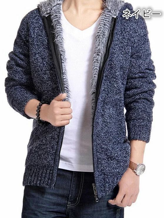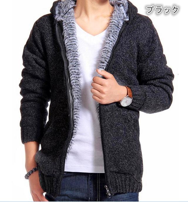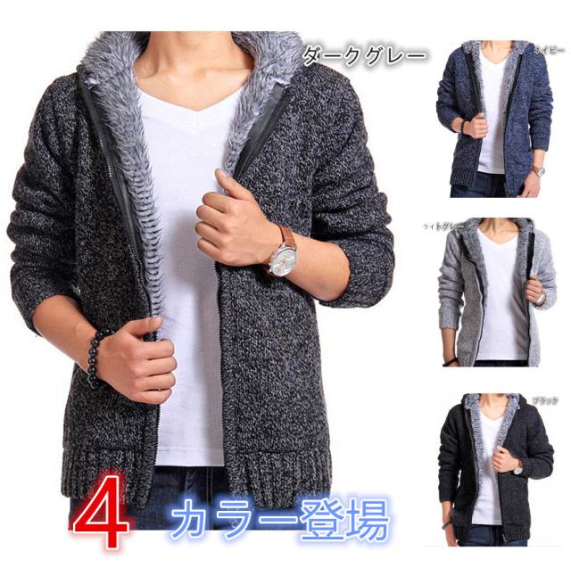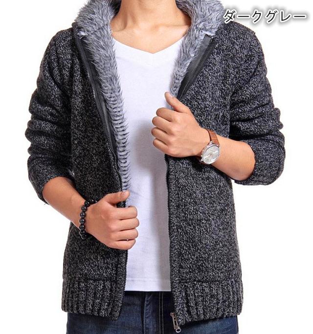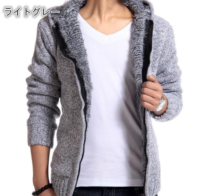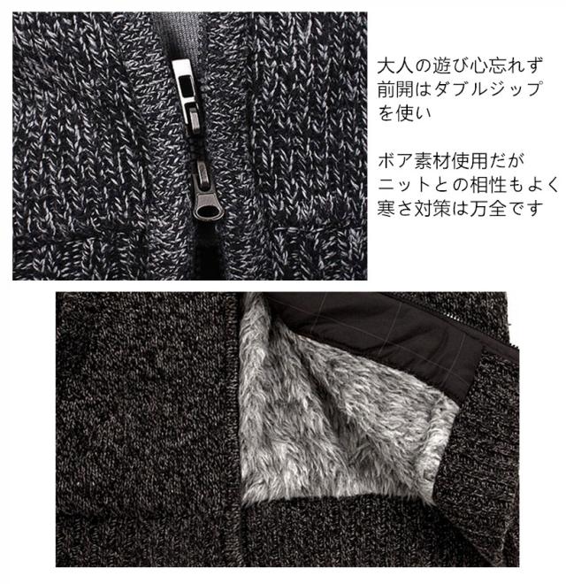 防寒ジップパーカー 裏ボアジップアップニットパーカー メンズ パーカー ボアパーカー 裏ボア ニットフリース 長袖 秋新作