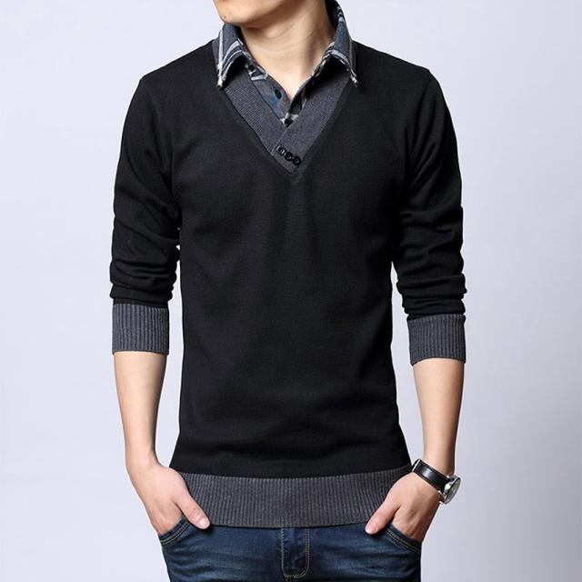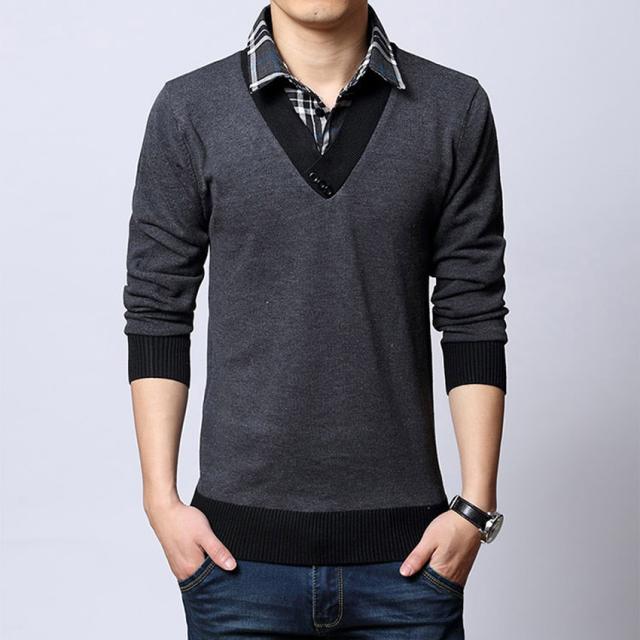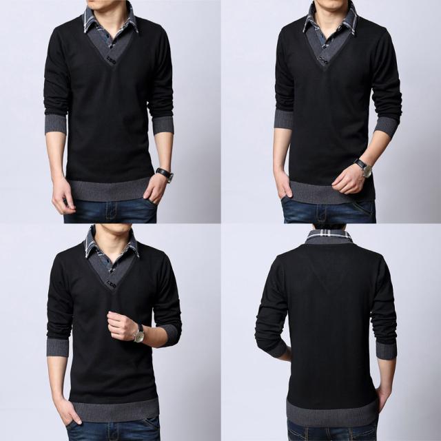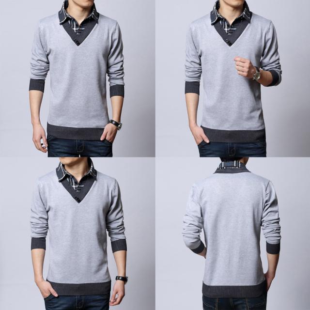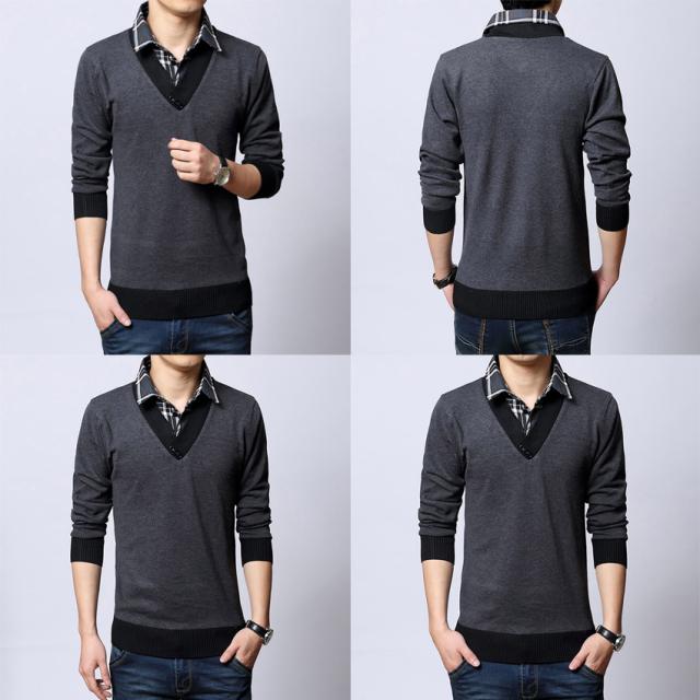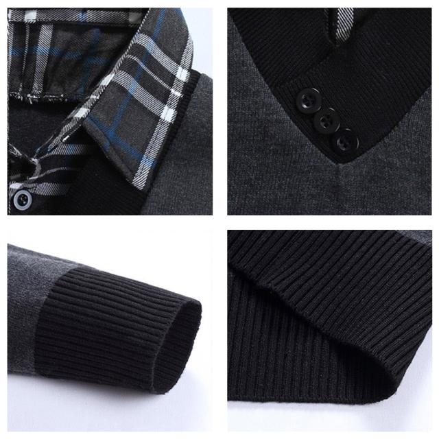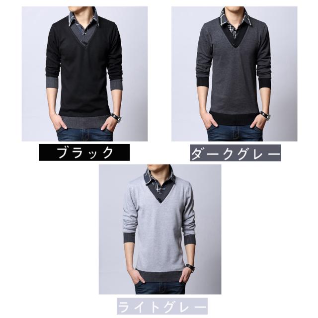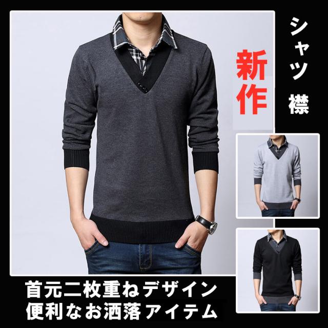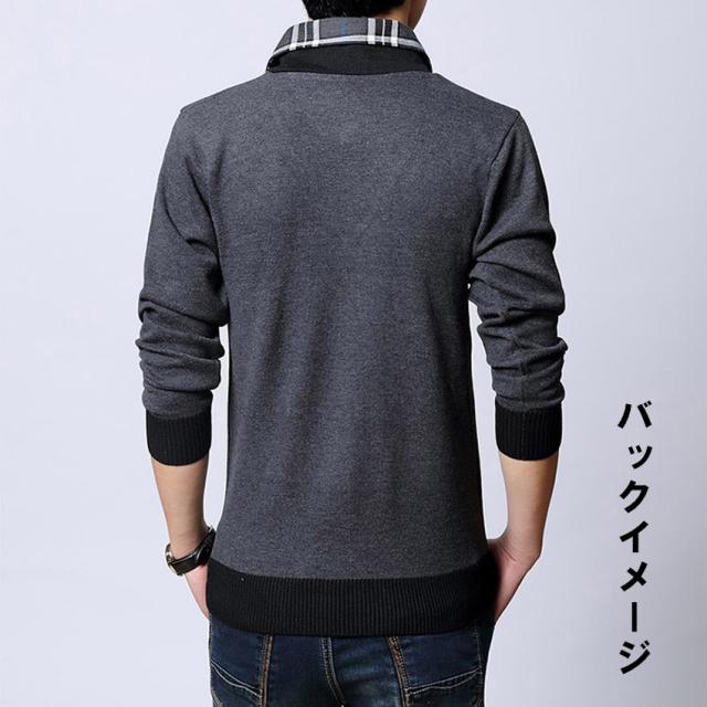 ニットセーター メンズ ブルゾン ニット メンズ 重ね着風 フェイクレイヤードセーター スタンドカラー チェック柄長袖 トップス メンズファッション