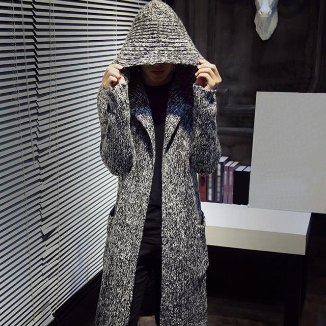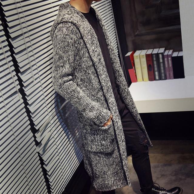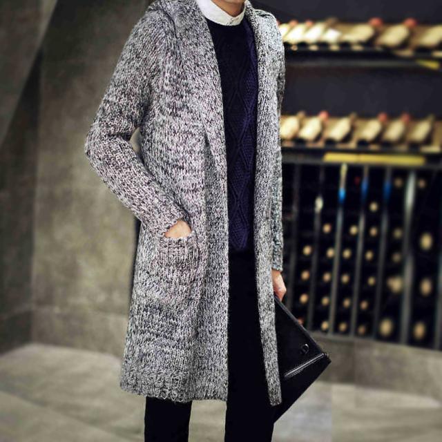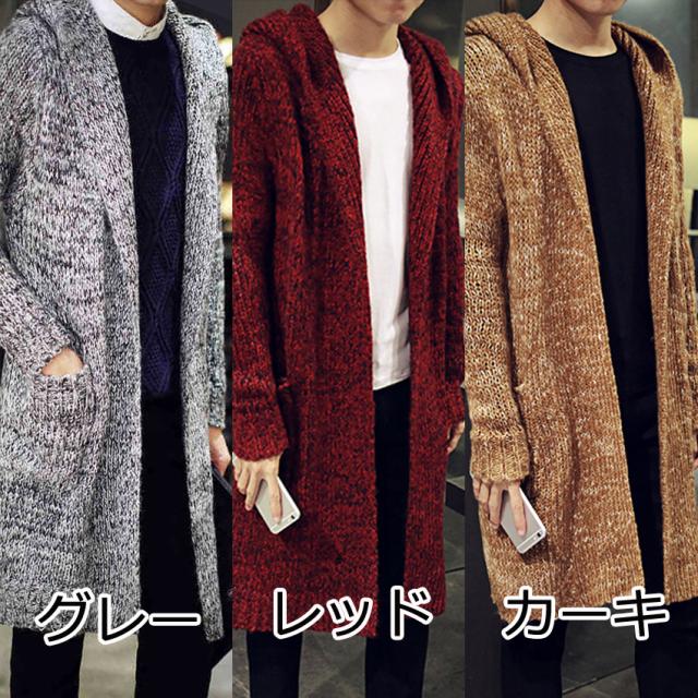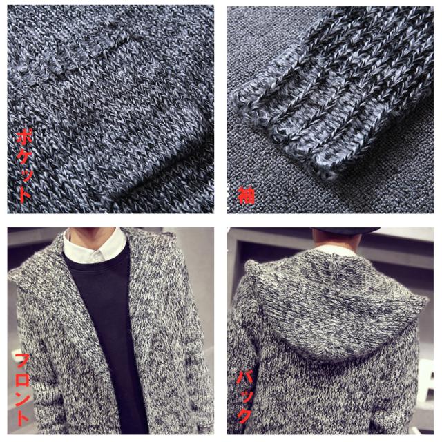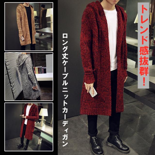 送料無料カーディガン メンズ ニットアウター ケーブル編み ロングニットセーターフード付き ジャケットアウター上着ショールカラーおしゃれ