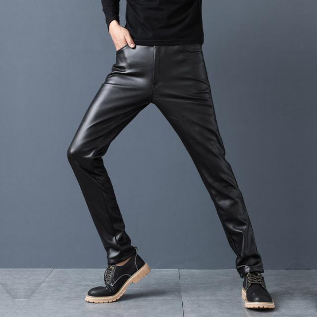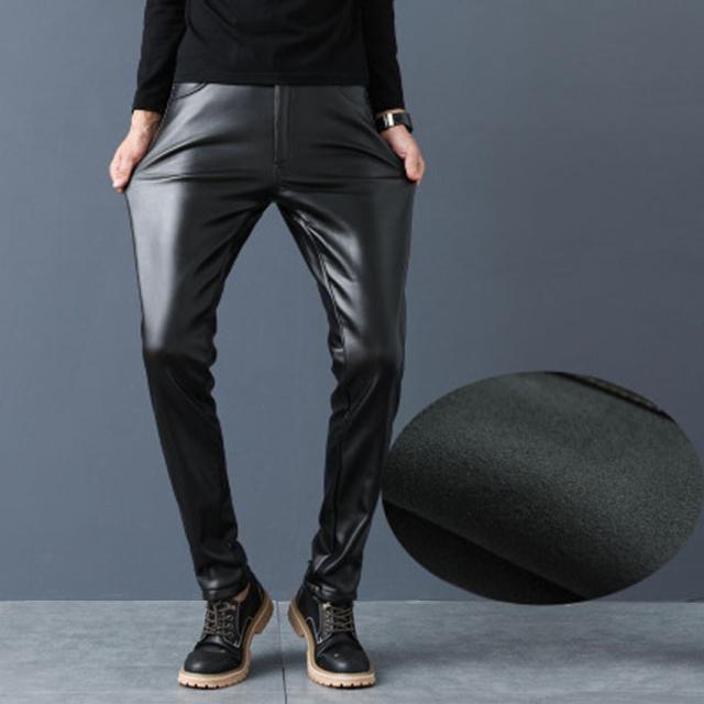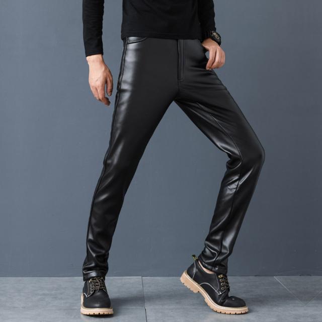 メンズ革パン 秋新作PU-レザーパンツ 防風防寒 無地 裏起毛 バイクパンツ ロングパンツ スリム スキニー モーターパンツ ライダース※ベルト付属しません
