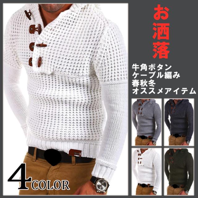 ニット セーター メンズ トップス 畦編み ケーブル編みクルーネック長袖ニットソーインナー 長袖 クルーネック トップス着こなしファション