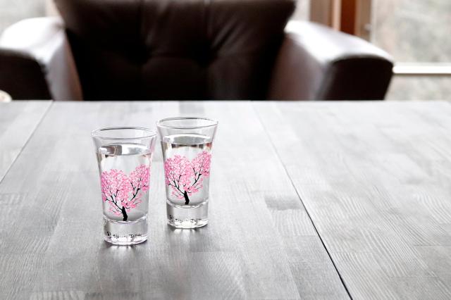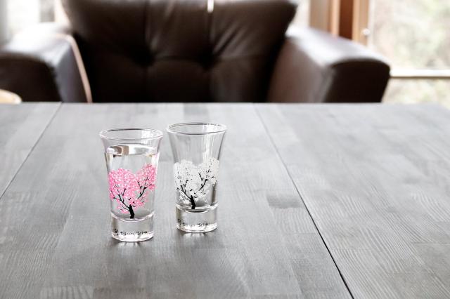 この不思議なグラスに冷たい飲み物を注ぐと桜が満開に!!