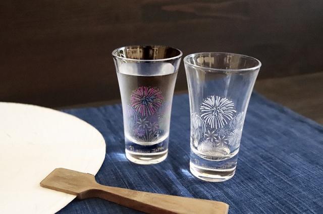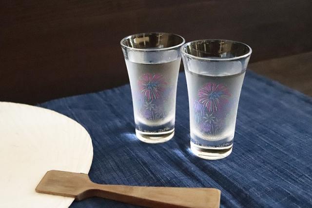 送料無料 温度をデザインに。『冷感花火 グラス天開ペアセット』 *丸モ高木陶器* お酒をより楽しむためのおしゃれな酒器!母の日 父の日 結婚祝い プレゼント ビール日本酒ウイスキー敬老の日退職祝いお歳暮お中元