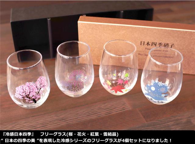 “ 日本の四季の美 ”を表現した冷感シリーズのフリーグラス/ゆらゆらグラスが4個セットになりました!