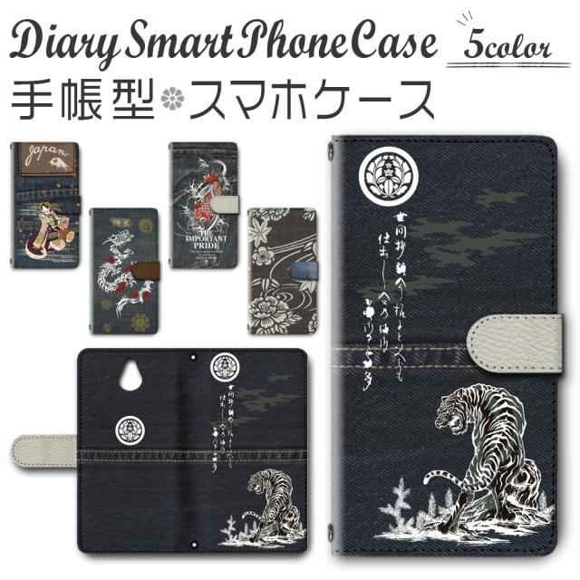 スマホケース スマホ ケース スマホカバー スマホ カバー 手帳型 かんたんスマホ 705KC 対応 送料無料 和柄 デニム / dc-177