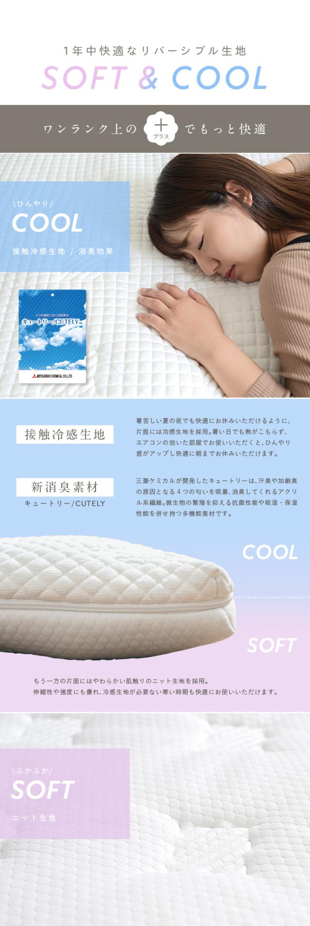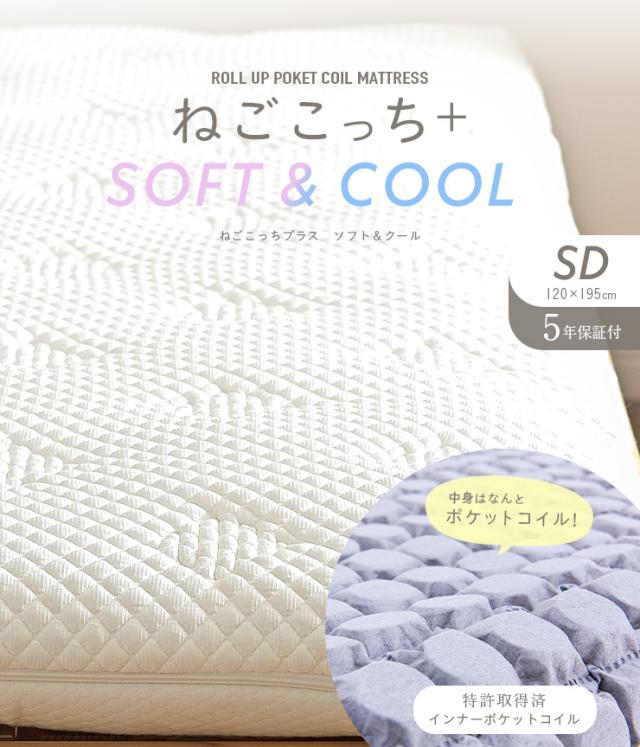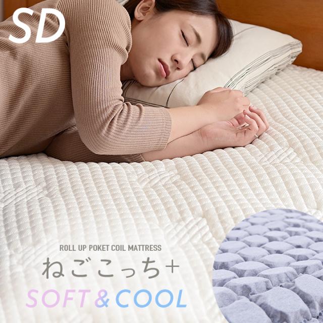 [接触冷感生地/消臭・抗菌・吸湿・保湿] ねごこっち+ SOFT&COOL SD 120x195cm セミダブル セミダブルサイズ マットレス ポケットコイルマットレス 薄型 オールシーズン ニット生地 柔らか 敷布団 トッパー ウォッシャブル 洗濯可能 (大型)