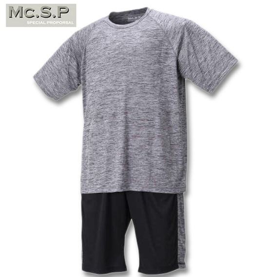 大きいサイズ Mc.S.P DRYカチオン杢半袖Tシャツ+ハーフパンツ チャコール×ブラック 3L 4L 5L 6L 8L/1256-1210-2-45