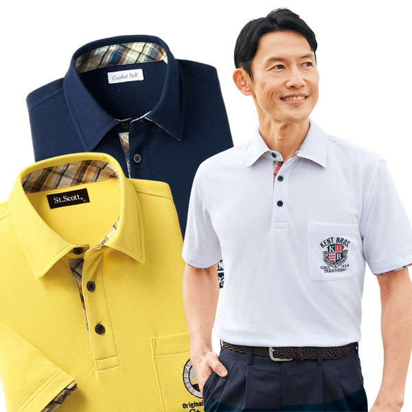 チェック使いデザインポロシャツ 3色組