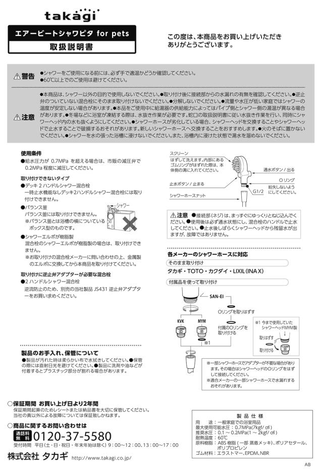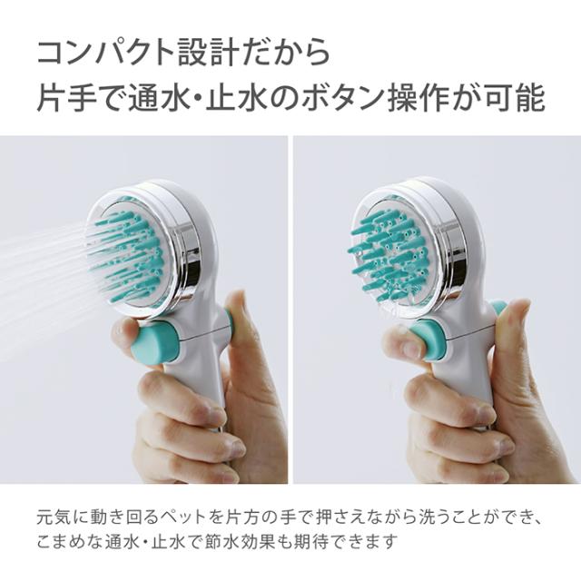 シャワーヘッド タカギ ペット用 犬 猫 トリミング グルーミング 止水ボタン シャワー ブラシ付き コンパクト ペットケア G1/2 takagi JSB026BGY エアービートシャワピタ for pets 2年間保証 公式 送料無料 手元スイッチ
