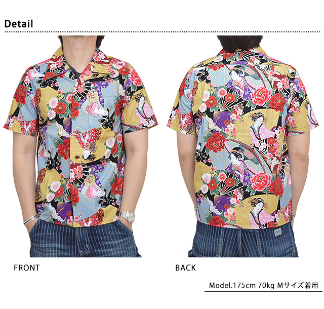 | ゴールドラメコットン半袖アロハシャツ「浮世絵芸者」◆衣櫻 KSK-M08411 | |||||||||||||||||||||||||