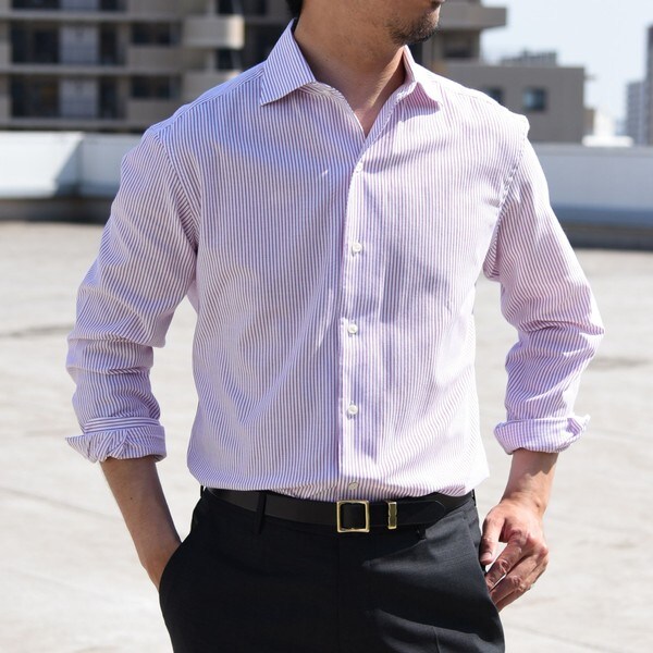 暑い夏も快適。カラミ織りのイタリアンワイドカラーシャツ