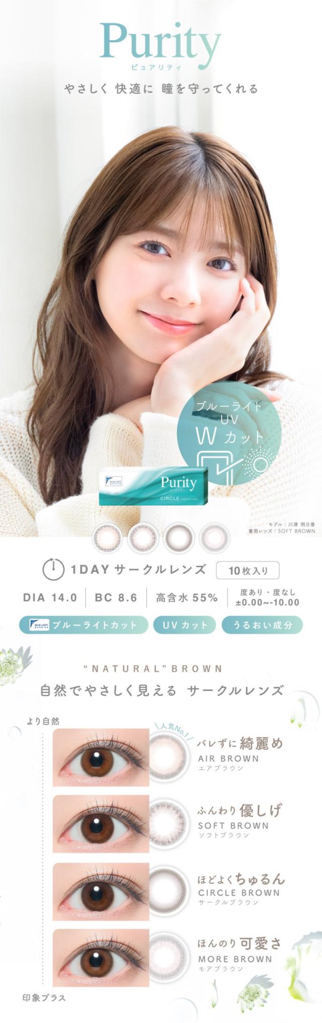 カラコン ブルーライトカット ピュアリティ ワンデー サークル UV Purity 1day CIRCLE 1箱10枚 度あり 度なし 1日使い捨て 紫外線対策 UVカット