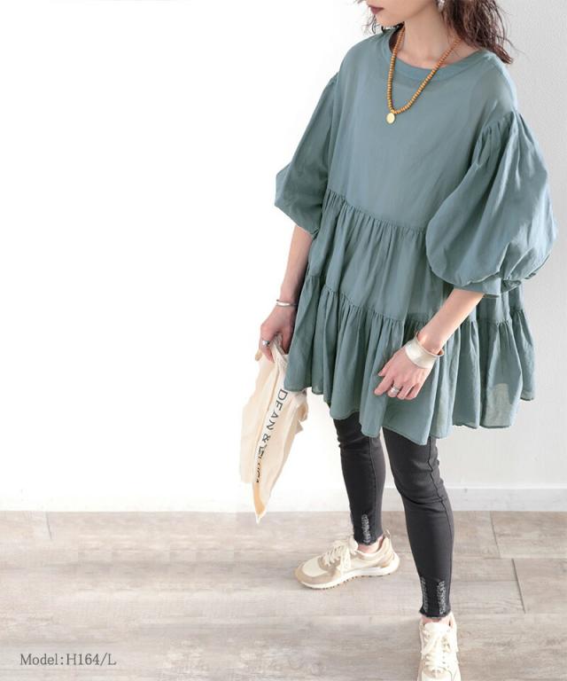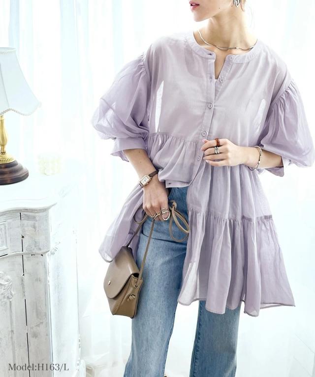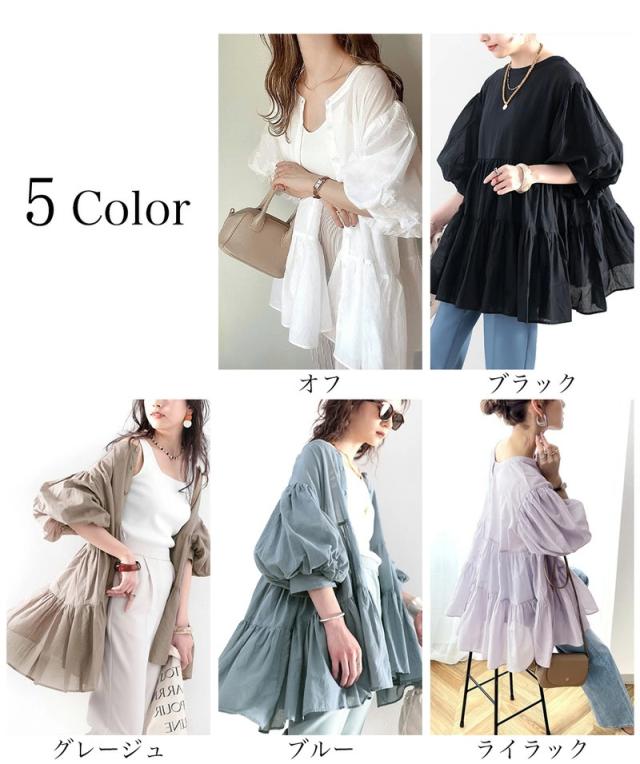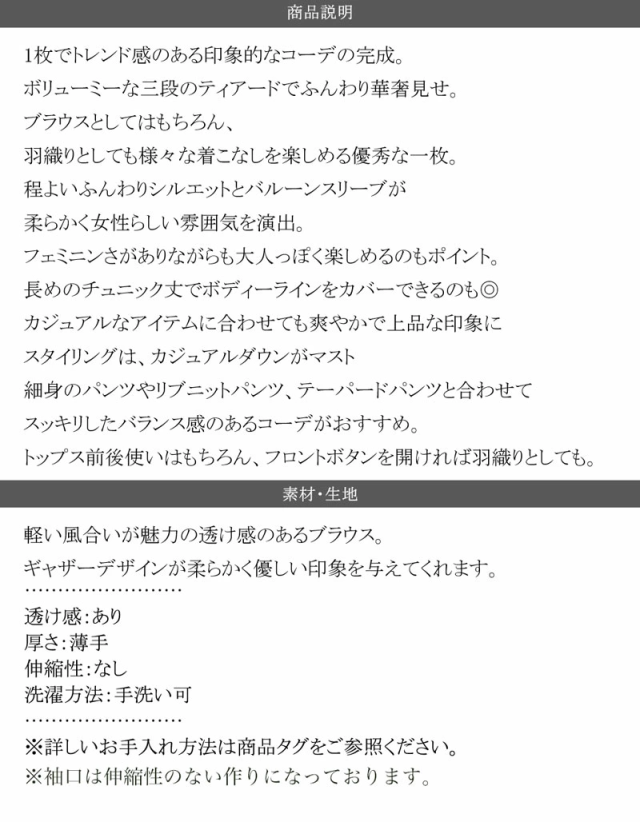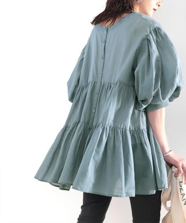 ★ひらり、揺れ感を楽しむ。3wayバルーンスリーブティアードブラウス★