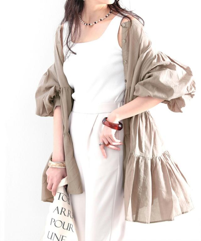 トップス前後使いはもちろん、フロントボタンを開ければ羽織りとしても。