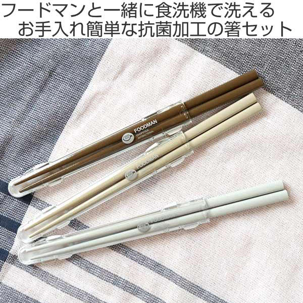 箸箱セット 抗菌 20.5cm 箸 箸箱 フードマン FOODMAN ( 食洗機対応 天然木 お箸 はし箱 セット 給食 弁当用 日本製 食洗機OK 抗菌加工 AG カトラリー 滑り止め お弁当用 携帯箸 携帯用 大人 お弁当 弁当 )