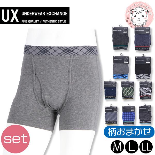 ボクサーパンツ 2枚セット メンズ エクスチェンジ アウトゴム ボクサーブリーフ 前あき M/L/LL